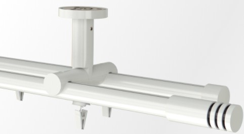 Karnisz podwójny sufitowy przesuwny z wspornikiem w kolorze białym i końcówkami Malibu o długości całkowitej 130 cm w cenie 174.66zł. Zestaw zawiera profile o łącznej długości 120.00 wsporniki oraz 12x ślizg z żabką na pierwszy profil i 12x ślizg z żabką na drugi.