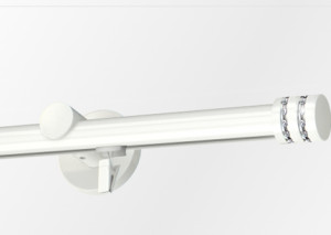 Karnisz pojedynczy przesuwny z krótkim wspornikiem w kolorze białym i końcówkami Vesta
