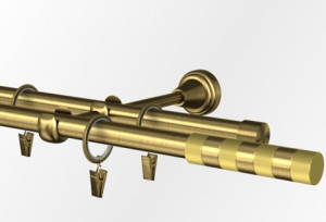 Karnisz podwójny szynowy, mosiądz antyczny Velia